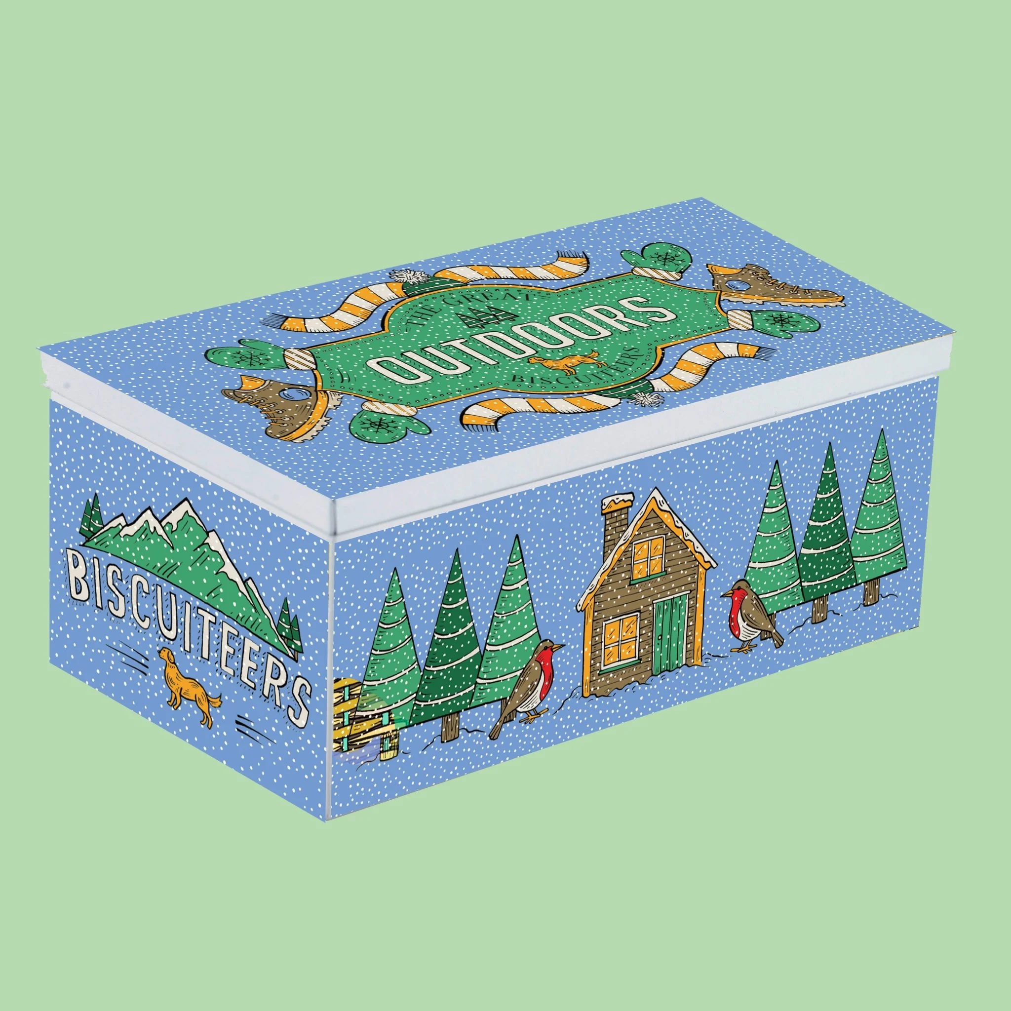 What's better than a country walk? Bundled up inside the tin you'll find everything you need for a seasonal stroll: the perfect puffer, man's best friend and a blazing fire to warm up next to, after your alpine amble.